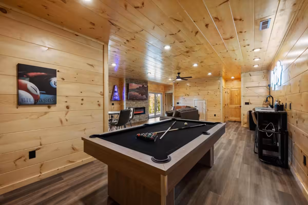 About this Space 📌 Not 40 mins drive to Smoky Mountain National Park. ONLY 17 mins(9 miles) * Gorgeous Cabin with Mountain Views * Custom Outdoor Pavilion with Fireplace, 65" HDTV, Charcoal Grill, and perfect view of Bluff Mountain! * Large Family Game Room and Wet Bar * 3 king master suites * Bunk room with a Queen over Queen Bed. Queen size sleeper sofa downstairs. * Viking Hot Tub on lower patio. * Full size kitchen with everything you need. * Game room with a wet bar, mini fridge, Pool Table, 75" 4K HDTV The space * Prime Location! * Mountain views from every room. * Modern & spacious 2022 Build. * 3 Spacious King bedrooms with private bathrooms and a Bunk room with Queen size beds. * Pool table in basement * Free Wi-Fi for streaming movies and shows. * Hot Tub for 5-6 people. Do not use if pregnant or if you have consumed alcohol. Use at your own risk. * Outdoor Pavilion with Fireplace. Plenty of seating. Bring your own firewood or purchase locally. * Charcoal grill (metal utensils provided). Bring your own charcoal or purchase locally. * Smart Roku TVs in all bedrooms, living areas, and outdoor pavilion. * Full size washer and dryer. * Elegant electric Fireplace. * Balcony w/ breathtaking mountain views, patio tables, and seating for all to enjoy. * Patio w/ refreshing mountain views. * Large hot tub * Ample space for parking * A starter pack of toilet paper, paper towels, a sponge, liquid dish soap, dishwasher tablets, bar soap, laundry soap, and coffee will be provided. Please bring more of the listed items to fit your needs based on the size of your group and length of stay. *** Sorry but no pets allowed. Additional fee of $250 will be charged for each unauthorized pet. *** No fires (including candles) inside our cabin *** NO SMOKING *** If there is a scent of smoke inside our cabin, you will be responsible for an additional $250 fee plus damages. Guest access 🔑 Guest Access Guests have private access to the entire cabin, hot tub, game room, and outdoor spaces. We provide self-check-in via smart lock entry keypad for your convenience, so you can arrive at your own pace and start enjoying your getaway right away.