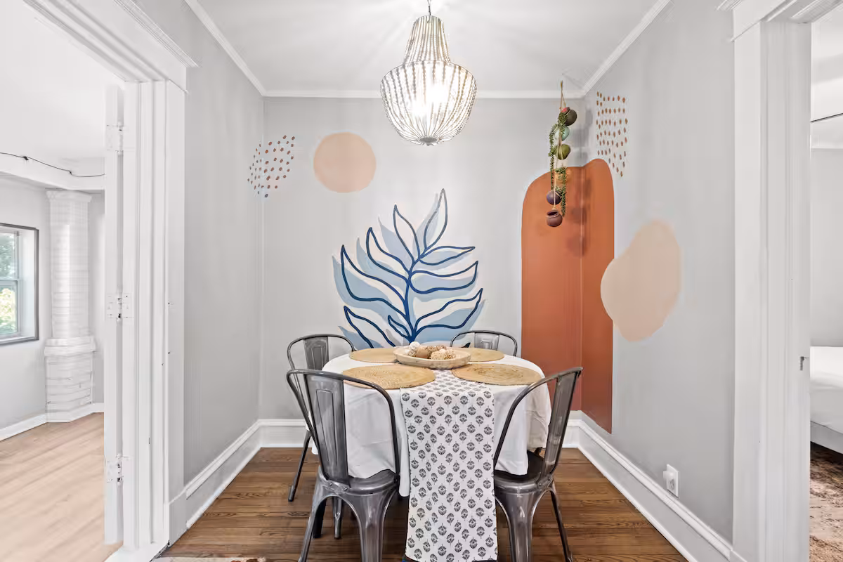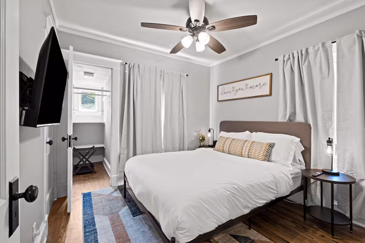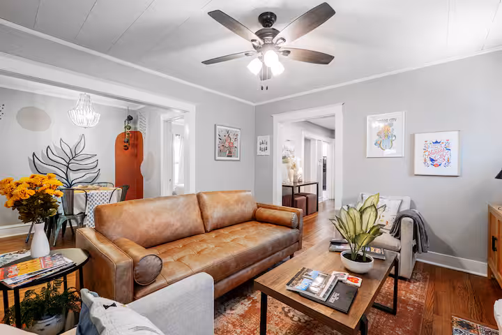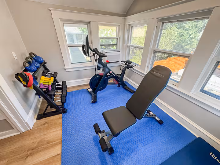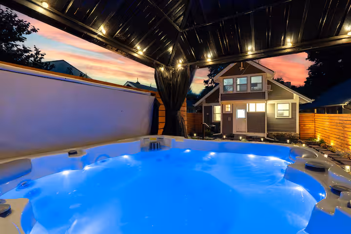 Welcome! This 3 bedroom, 1.5 bath in the heart of Kansas City is the perfect mix of modern style and cozy charm. Just minutes away from the Plaza, Westport and Downtown, you can easily experience all the city has to offer. Wake up to a fully stocked coffee bar, workout in the gym, get some work done using our high-speed Wi-fi or step outside to your private entertainment haven with a hot tub and outdoor dining for 6. Come relax in style, unwind and create unforgettable memories. The space 3 bedrooms with comfortable queen beds Spacious closets and luggage racks 1.5 bathrooms Coffee bar Fully stocked kitchen with all of the amenities that will need to prepare a meal Luxury bath towels and sheets Private off street parking Gym with peloton and weights Private fenced backyard with hot tub and outdoor dining covered by a gazebo Guest access There is a digital keyless entry to the home that you will be given a personalized access code to on the morning of your check in day.